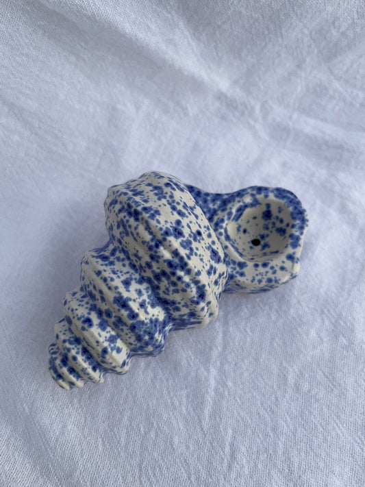 Speckled Cobalt Handmade Ceramic Shell Pipe
